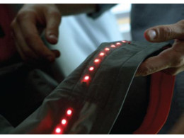 "Их предполагается оснастить светодиодами, вшитыми в ткань и реагирующими на передвижения владельца. По мнению разработчиков, такие вещи будут полезны велосипедистам, мотоциклистам и людям, занимающимся бегом, в ночное время. Все вещи предполагается делать из водоотталкивающих материалов. Куртки будут оснащены двумя белыми светодиодными полосами на груди, красными светодиодными полосами на спине и оранжевыми — на рукавах. Нарукавные светодиоды работают в качестве указателей поворота, а задние красные — способны мигать во время торможения. Кроме того, на правом рукаве сделают световую индикацию сообщений телефона", - рассказывается на сайте.